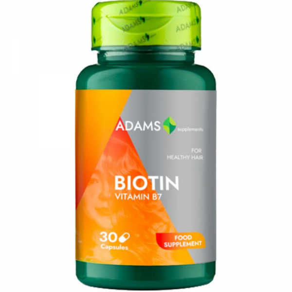 NOTA: Fotografia produsului Biotina (Vitamina B7) 30cps produs de Adams Vision are caracter informativ si poate contine accesorii ce nu sunt incluse in pachetul standard al produsului sau pot exista diferente intre aceasta si produsului Biotina (Vitamina B7) 30cps.