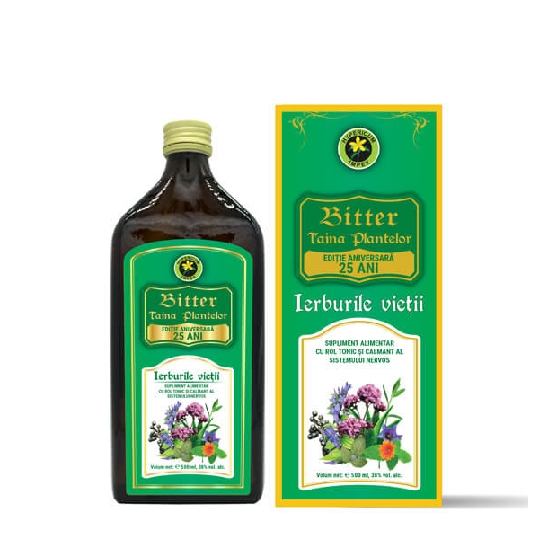 Bitterul „Ierburile vieții” este un extract natural hidroalcoolic, obținut din 21 de plante medicinale, cu proprietăți fitoterapeutice deosebite. Este o formulă originală, bitterul fiind preparat, în principal, din plante medicinale existente în flora spontană a României și fiind atent formulat pentru protejarea și tonifierea sistemului nervos. Grija față de sănătatea sistemului nervos este cu atât mai necesară cu cât ritmul vieții noastre devine tot mai alert și stresant, iar alimentația noastră devine tot mai haotică (mese neregulate, asocierea greșită a alimentelor, mâncatul în grabă și la ore improprii), procesată (devitalizată, lipsită de enzime), plină de toxine, aditivi și cu un profil nutrițional dezechilibrat (exces de sare, carbohidrați rafinați: zahăr alb, fructoză, glucoză, făină albă și derivatele acesteia, sucuri; și de grăsimi rele: trans, saturate, oxidate, cu raport omega 6: omega 3 disproporționat).