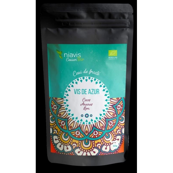 NOTA: Fotografia produsului CEAI "VIS DE AZUR" 50GR produs de Niavis are caracter informativ si poate contine accesorii ce nu sunt incluse in pachetul standard al produsului sau pot exista diferente intre aceasta si produsului CEAI "VIS DE AZUR" 50GR.