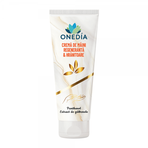 Cremă de mâini regenerantă și hrănitoare de la Onedia este o formulă special creată pentru a hidrata intens, regenera și proteja pielea mâinilor uscate, sensibile sau agresate de factori externi. Cu o textură fină și ingrediente naturale atent selectate, această cremă oferă o îngrijire zilnică completă, menținând pielea catifelată și sănătoasă.