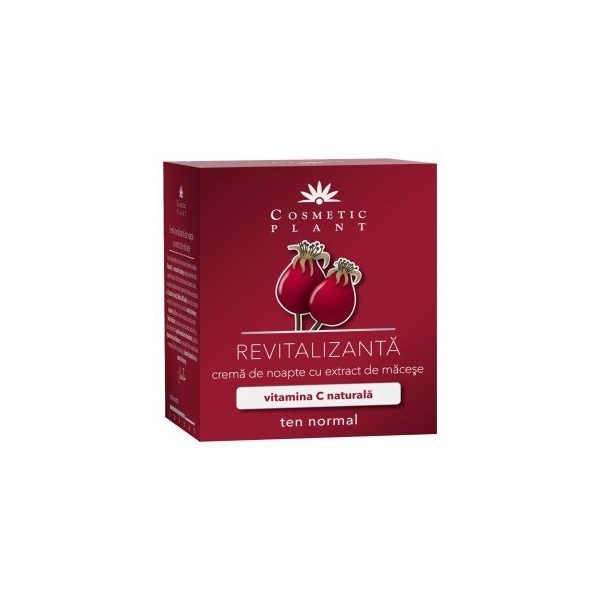 NOTA: Fotografia produsului Crema noapte revitalizanta cu macese 50ml produs de Cosmetic Plant are caracter informativ si poate contine accesorii ce nu sunt incluse in pachetul standard al produsului sau pot exista diferente intre aceasta si produsului Crema noapte revitalizanta cu macese 50ml.