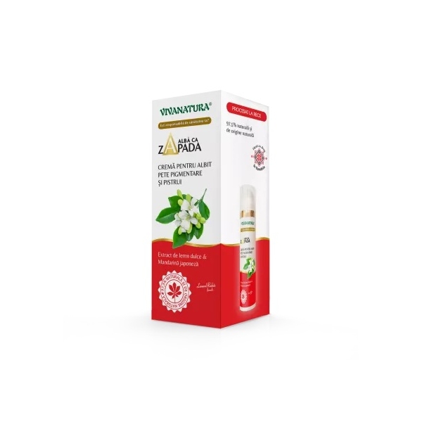 NOTA: Fotografia produsului Crema pentru pete pigmentare si pistrui, 45ml, VivaNatura produs de VIVANATURA are caracter informativ si poate contine accesorii ce nu sunt incluse in pachetul standard al produsului sau pot exista diferente intre aceasta si produsului Crema pentru pete pigmentare si pistrui, 45ml, VivaNatura.