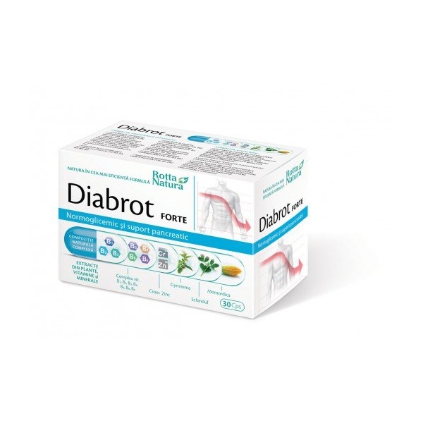 In lupta cu diabetul, un regim alimentar adecvat nu este suficient. Diabrot este o solutie complexa ce conjuga 3 categorii importante de resurse (extracte din plante, vitamine si minerale) pentru a asigura o ingrijire completa in cazul diabetului de tip II. Diabrot, cu actiunea sa complexa, mentine glicemia in limite normale, protejeaza si regenereaza celulele pancreatice si acopera carentele nutritionale asociate cu regimul dietetic specific persoanelor cu diabet.