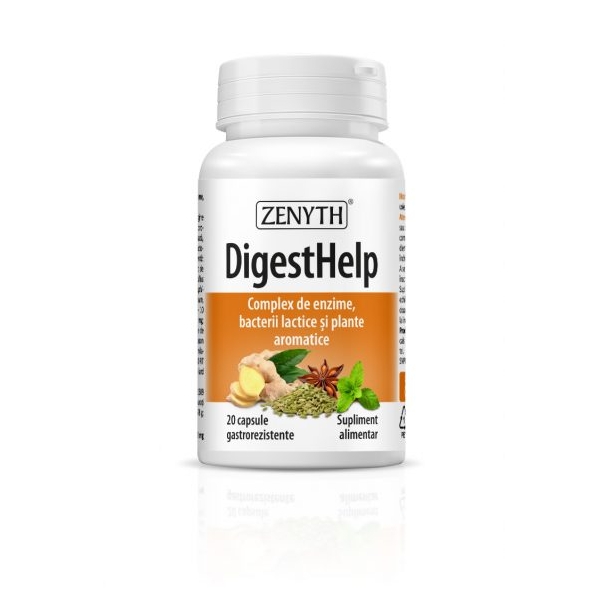 NOTA: Fotografia produsului DIGESTHELP 20CPS produs de Zenyth Pharmaceuticals, Romania are caracter informativ si poate contine accesorii ce nu sunt incluse in pachetul standard al produsului sau pot exista diferente intre aceasta si produsului DIGESTHELP 20CPS.