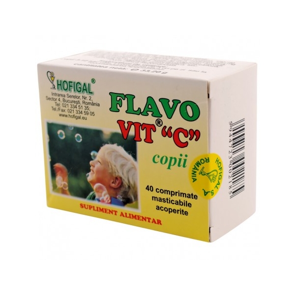 NOTA: Fotografia produsului Flavovit "C" pt. copii (compr. 200 mg) produs de Hofigal,Romania are caracter informativ si poate contine accesorii ce nu sunt incluse in pachetul standard al produsului sau pot exista diferente intre aceasta si produsului Flavovit "C" pt. copii (compr. 200 mg).