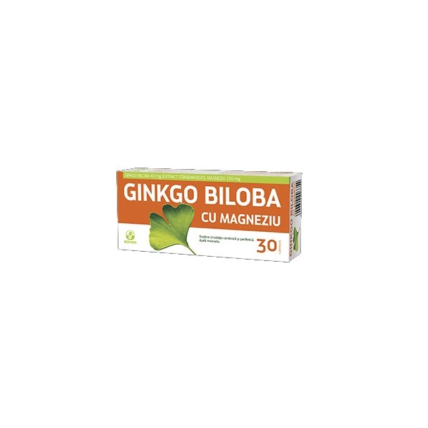 NOTA: Fotografia produsului Ginkgo Biloba 40mg + Magneziu 150mg 30cpr produs de Biofarm, Romania are caracter informativ si poate contine accesorii ce nu sunt incluse in pachetul standard al produsului sau pot exista diferente intre aceasta si produsului Ginkgo Biloba 40mg + Magneziu 150mg 30cpr.