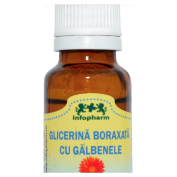 NOTA: Fotografia produsului Glicerina boraxata cu GALBENELE 20g produs de Infofarm are caracter informativ si poate contine accesorii ce nu sunt incluse in pachetul standard al produsului sau pot exista diferente intre aceasta si produsului Glicerina boraxata cu GALBENELE 20g.