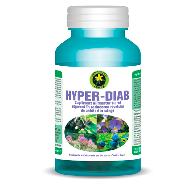 NOTA: Fotografia produsului Hyper Diab,60cps produs de Hypericum Impex are caracter informativ si poate contine accesorii ce nu sunt incluse in pachetul standard al produsului sau pot exista diferente intre aceasta si produsului Hyper Diab,60cps.