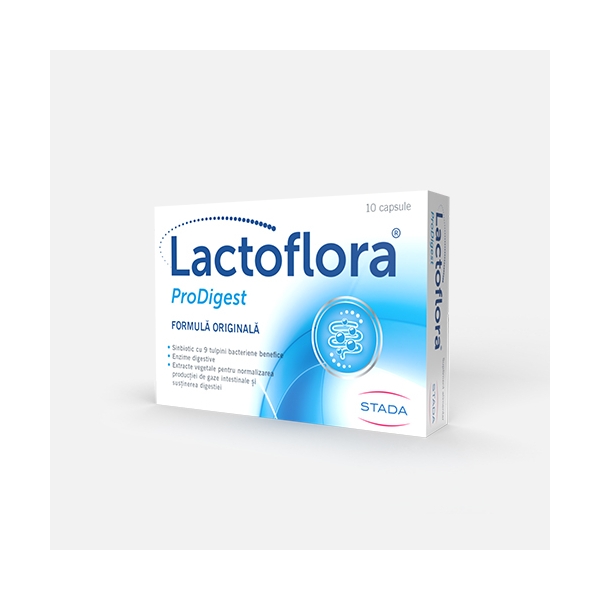 NOTA: Fotografia produsului Lactoflora ProDigest x 10 cps produs de Stada, Germania are caracter informativ si poate contine accesorii ce nu sunt incluse in pachetul standard al produsului sau pot exista diferente intre aceasta si produsului Lactoflora ProDigest x 10 cps.