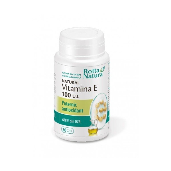 NOTA: Fotografia produsului Natural Vitamina E 100 UI 30cps produs de Rotta Natura S.A. are caracter informativ si poate contine accesorii ce nu sunt incluse in pachetul standard al produsului sau pot exista diferente intre aceasta si produsului Natural Vitamina E 100 UI 30cps.