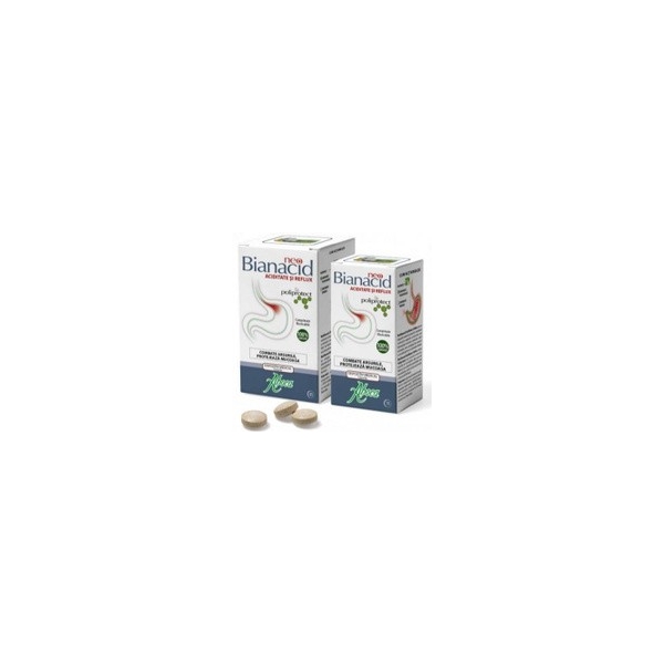 NeoBianacid si Reflux este un dispozitiv medical pe baza de complexe moleculare vegetale si minerale, care formeaza pe mucoasa o pelicula cu efect de bariera, care o protejeaza de contactul cu sucurile gastrice si substantele iritante.Poate fi administrat copiilor peste 6 ani si femeilor insarcinate.NeoBianacid si Reflux contine Poliprotect, un complex molecular, rezultat al cercetarilor efectuate de Aboca si care, datorita proprietatilor sale mucoadezive, imita functia de protectie a mucusului fiziologic.Poliprotect actioneaza datorita sinergiei dintre componenta polizaharidica, care prezinta o inalta afinitate fata de mucoasa si componenta minerala.Compozitie:Poliprotect complex molecular sinergic, ce contine polizaharide si minerale naturale.Limestone si Nahcolite.Titrat in polizaharide.Fractie flavonoidica ce contine, de asemenea, zahar din trestie, guma arabica, aroma naturala de menta.Mod de utilizare:Se administreaza un comprimat, la nevoie, lasandu-l sa se topeasca incet in gura.In caz de reflux gastroesofagian, se recomanda administrarea unui comprimat dupa mesele principale si a unuia seara, inainte de culcare. In cazul arsurilor si senzatiei de plentitudine, asociate cu digestia dificila, se recomanda administrarea unui comprimat dupa masa. In toate cazurile, daca este necesar, administrarea poate fi repetata de mai multe ori pe zi, chiar si la intervale scurte. Produsul poate fi consumat si de catre copii, incepand cu varsta de 6 ani,cu aceeasi posologie. Produsul poate fi utilizat si pentru perioade indelungate.Dupa administrare este indicat sa nu consumati alimente, bauturi sau guma de mestecat timp de cel putin 30 de minute.