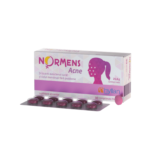 NOTA: Fotografia produsului Normens ACNE 30 CPR FILMATE Hyllan produs de Hyllan Pharma are caracter informativ si poate contine accesorii ce nu sunt incluse in pachetul standard al produsului sau pot exista diferente intre aceasta si produsului Normens ACNE 30 CPR FILMATE Hyllan.