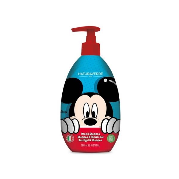 Gel de dus/samponul Mickey Mouse este un produs 2 in 1 ce are o formula delicata, cu miros placut si respecta hidratarea naturala a pelii si a parului, echilibrand pH-ul. Asigura curatarea perfecta, conferind finete si o senzatie de prospetime. Baia va deveni o adevarata distractie pentru copii. Cu extract organic de ulei de jojoba, curata si hidrateaza delicat pielea corpului si reda stralucirea parului. Produsul este testat dermatologic.