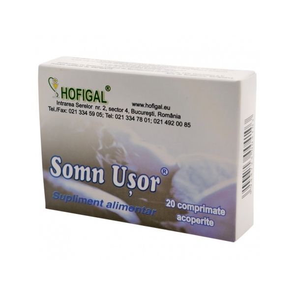 NOTA: Fotografia produsului Somn Usor - 20 compr. produs de Hofigal,Romania are caracter informativ si poate contine accesorii ce nu sunt incluse in pachetul standard al produsului sau pot exista diferente intre aceasta si produsului Somn Usor - 20 compr..