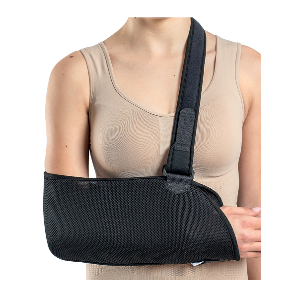 Orteza este un suport eficient pentru braţ și antebraţ. Datorită celor 2 benzi de fixare, nu permite abducţia braţului și rotaţia externă.