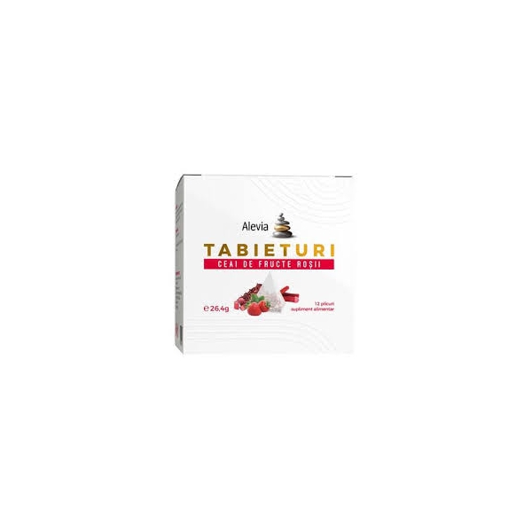 NOTA: Fotografia produsului TABIETURI CEAI DE FRUCTE ROSII 12DZ produs de Alevia are caracter informativ si poate contine accesorii ce nu sunt incluse in pachetul standard al produsului sau pot exista diferente intre aceasta si produsului TABIETURI CEAI DE FRUCTE ROSII 12DZ.