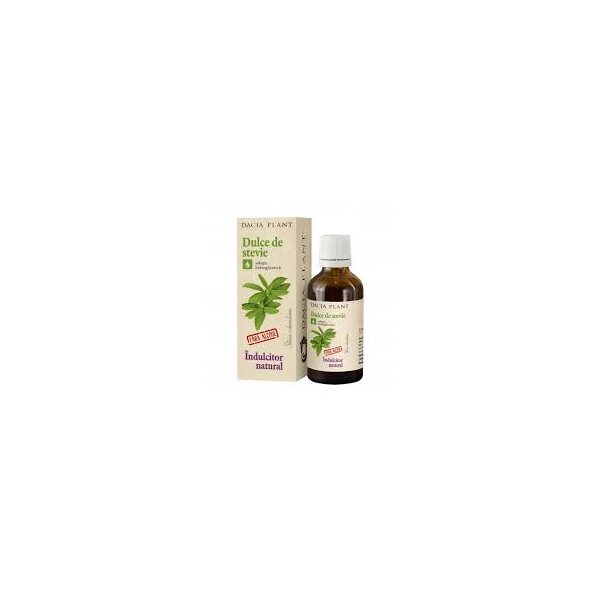 NOTA: Fotografia produsului TINCTURA DULCE DE STEVIE-INDULCITOR 50ML produs de Dacia Plant, Romania are caracter informativ si poate contine accesorii ce nu sunt incluse in pachetul standard al produsului sau pot exista diferente intre aceasta si produsului TINCTURA DULCE DE STEVIE-INDULCITOR 50ML.