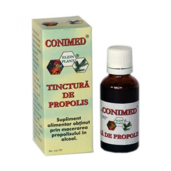 NOTA: Fotografia produsului Tinctura propolis 30ml produs de Elzin Plant are caracter informativ si poate contine accesorii ce nu sunt incluse in pachetul standard al produsului sau pot exista diferente intre aceasta si produsului Tinctura propolis 30ml.