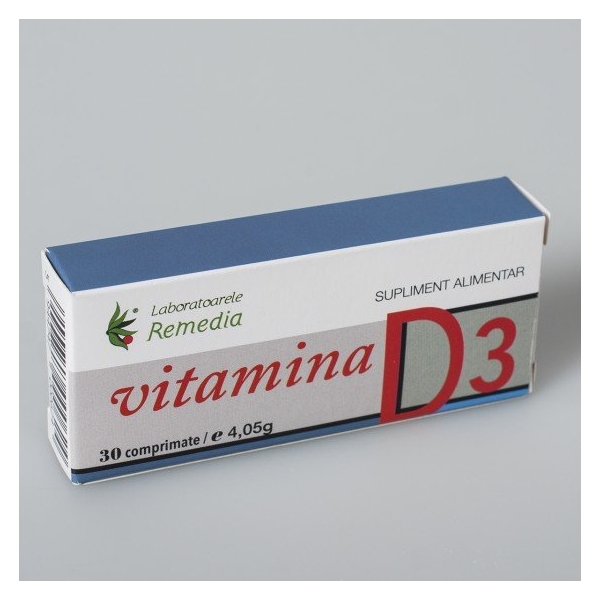 NOTA: Fotografia produsului Vitamina D3 30cps produs de Laboratoarele Remedia are caracter informativ si poate contine accesorii ce nu sunt incluse in pachetul standard al produsului sau pot exista diferente intre aceasta si produsului Vitamina D3 30cps.